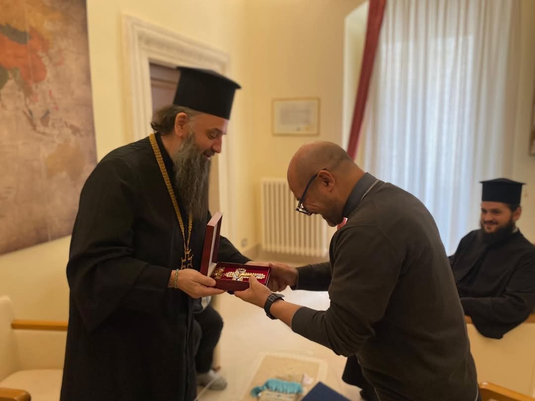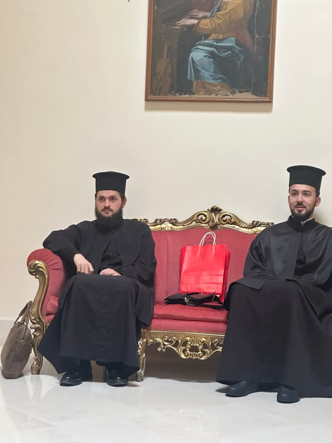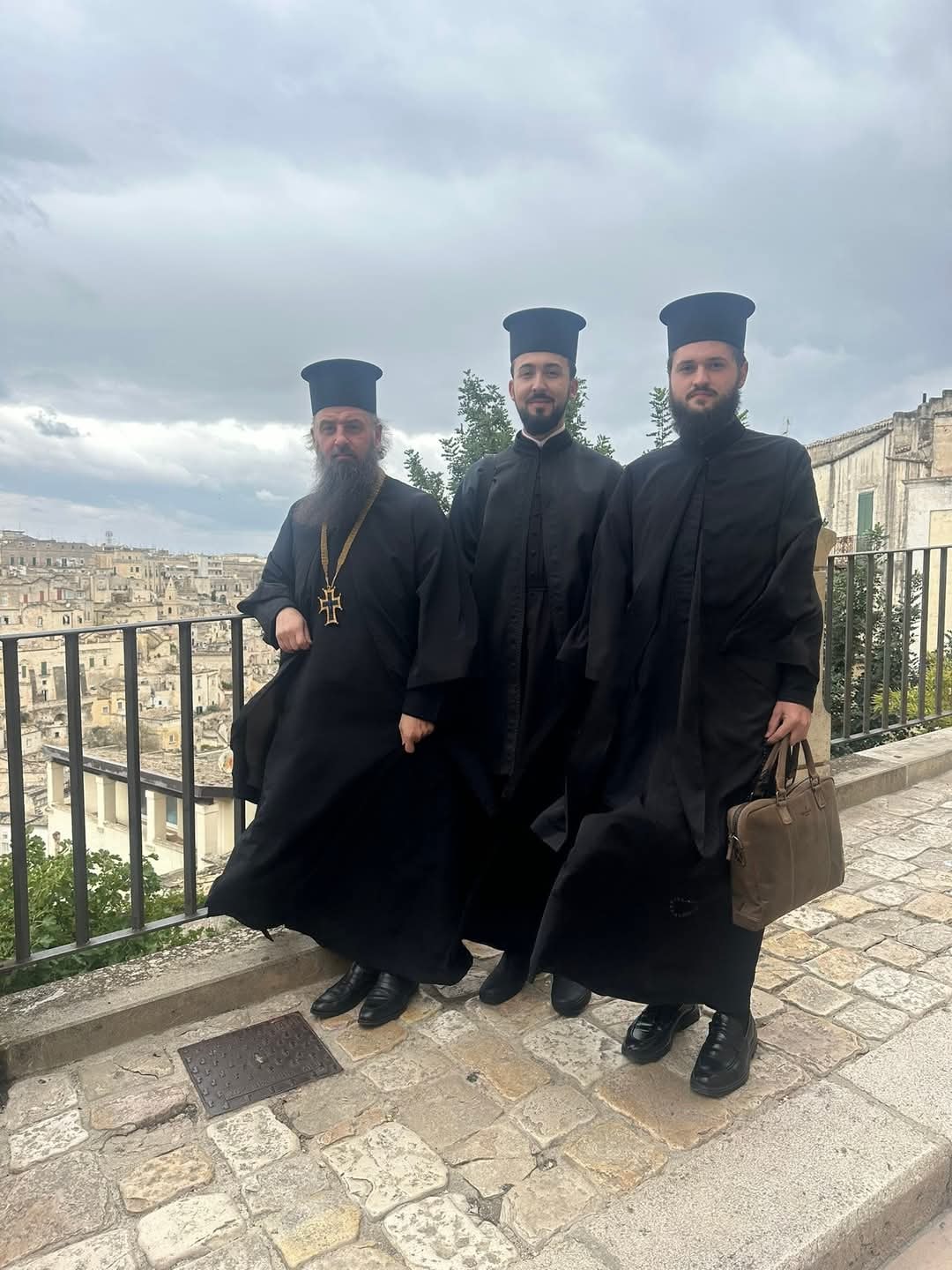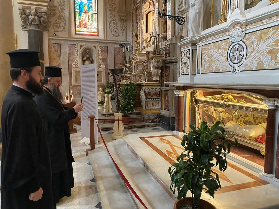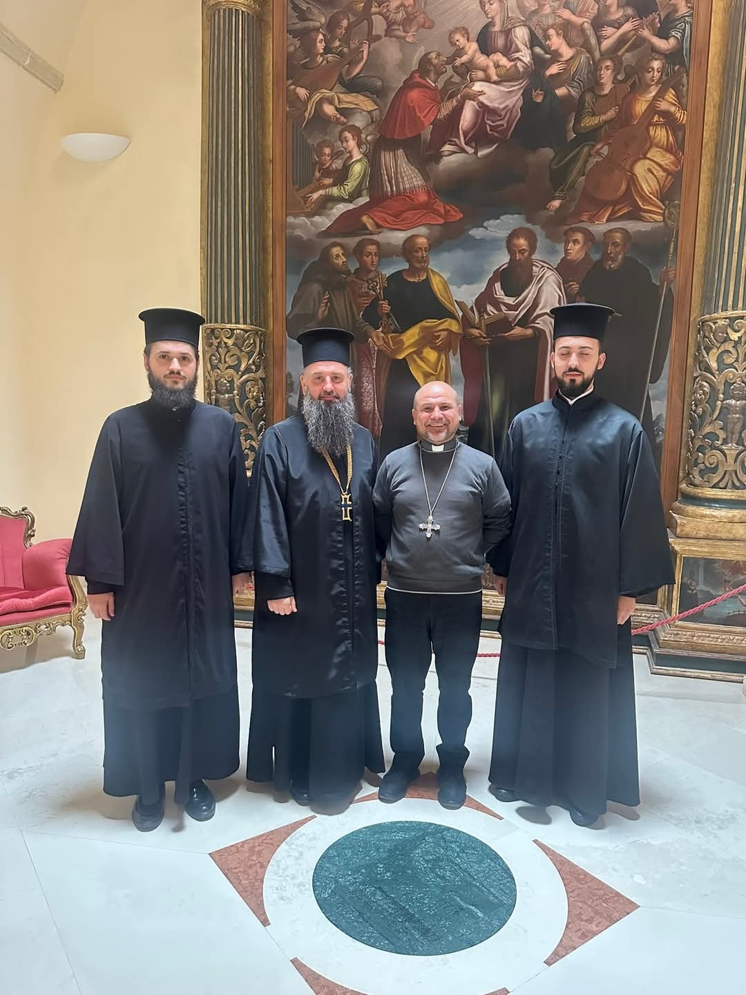 03-10-2025 I monaci del Sacro Monastero Ortodosso Carbone salutano l'Arcivescovo di Matera e pregano davanti al Sacro Sarcofago di San Giovanni da Matera